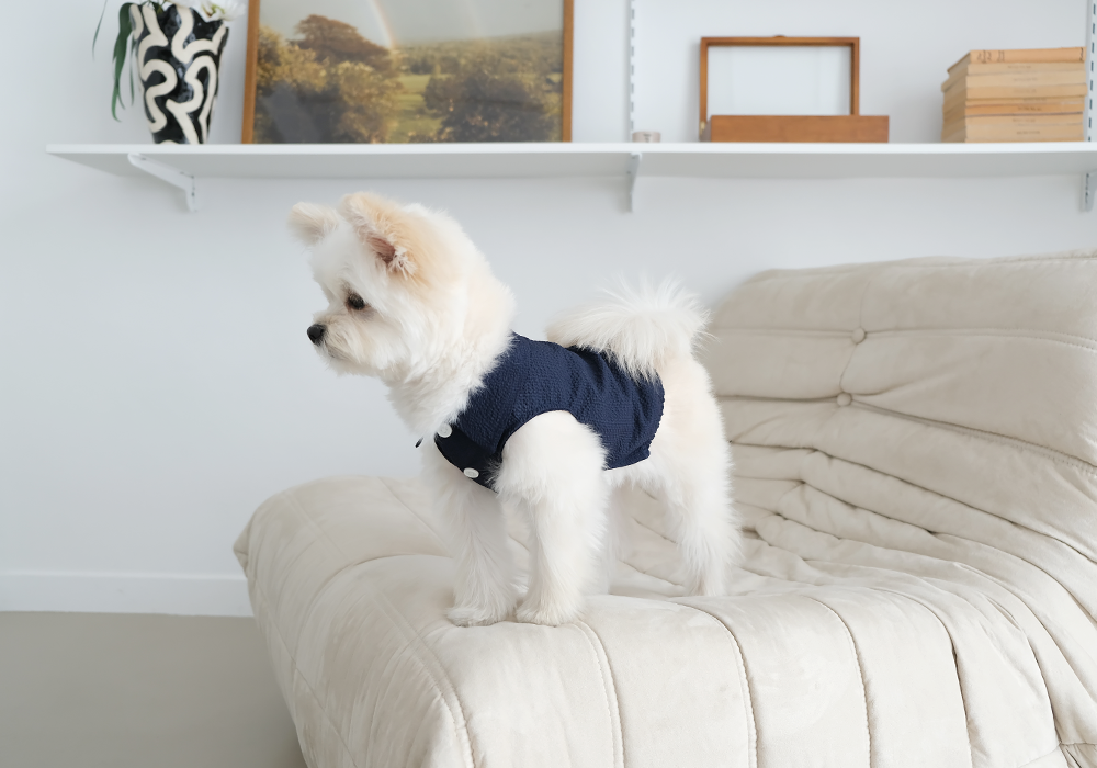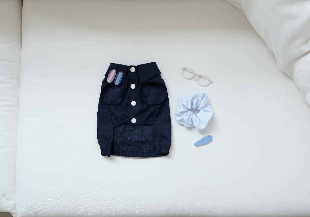 seersucker balloon shirt _ navy